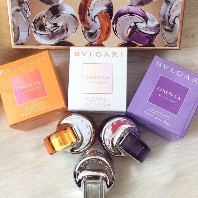 GIFTSET NƯỚC HOA BVLGARI 3 CHAI (CÓ SẴN ) ❤️❤️❤️ Bộ set gồm 3 chai nước hoa BVL thuộc dòng Omia thơm mát ( Amethyst - India _ Coral ) . Mỗi chai 15 ml dạng xịt rất đẹp và tiện mang theo sử dụng hàng ngày *** Omnia Amethyste tuyệt vời và thanh khiết với mùi hương tao nhã và tươi mát, Omnia Amethyste được thiết kế dành riêng cho những phụ nữ trẻ trung muốn thể hiện bản thân. -Mùi hương đặc trưng: Hương đầu: Nhựa cây, Bưởi. Hương giữa: Nụ hồng Bungari, Lá Shiso, Ca-cao. Hương cuối: Xạ hương, Gỗ Palissander, Cỏ Vetiver. *** Omnia Indian Garnet là một sự ưu ái dành cho các quý cô nữ tính, ngọt ngào. Với thành phần chủ yếu là hương cam, quýt, hổ phách,… tất cả tạo nên một bức tranh đặc sắc về một hương thơm thần bí. -Mùi hương đặc trưng: Hương đầu: hương cam, quýt. Hương giữa: hoa huệ. Hương cuối: gỗ, hổ phách. ***Omina Coral: mùi hương mới gợi lên hình ảnh người phụ nữ mới mẻ, quyến rủ, táo bạo, rất kỳ lạ. Đây là lần đầu tiên Bvlgari tạo nên dấu ấn với hương trái cây, nhưng theo cách rất riêng, rất là Bvlgari. - Mùi hương đặc trưng: Hương đầu: Cam bergamot, cánh hoa dâm bụt. Hương giữa: hoa loa kèn, quả lựu. Hương cuối: hương gỗ táo, Xạ hương, Cỏ Vetiver.