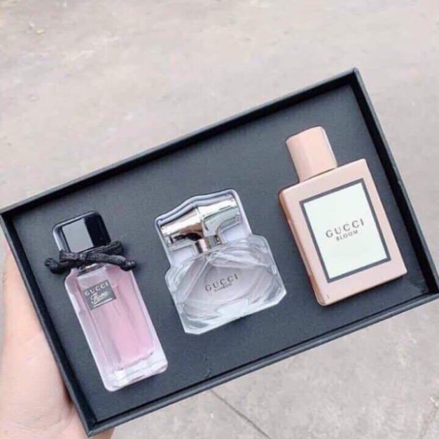 Set nước hoa LANCOME Mini Giftset gồm 5 sản phẩm : + Tresor In Love EDP 5ml : Hương đầu: Cam Bergamot, Hồng tiêu, Quả lê, Trái xuân đào. Hương giữa: Hoa nhài, Hoa hồng Taif, Hoa tím, Quả đào. Hương cuối: Xạ hương, Gỗ tuyết tùng Virginia. + Miracle EDP 5ml : Hương đầu: Quả vải, Hoa lan Nam Phi. Hương giữa: Hoa mộc lan, Gừng, Quả quýt hồng, Tiêu, Hoa nhài. Hương cuối: Hổ phách, Xạ hương, Hoa nhài. + La Vie Est Belle EDP 4ml : Hương đầu: Quả lý chua đen, Quả lê. Hương giữa: Hoa diên vĩ, Hoa nhài, Hoa cam. Hương cuối: Cây hoắc hương, Đậu Tonka, Hương Va ni, Kẹo nhân hạt. + Tresor EDP 7.5ml : Hương đầu: Quả dứa (quả thơm), Hoa tử đinh hương, Quả đào, Hoa mơ, Hoa linh lan thung lũng, Cam Bergamot, Hoa hồng. Hương giữa: Hoa diên vĩ, Hoa nhài, Hoa vòi voi, Hoa hồng. Hương cuối: Quả mơ, Gỗ đàn hương, Hổ phách, Xạ hương, Hương Va ni, Quả đào. + Hypnose EDP 5ml : Hương đầu: Hoa chanh dây. Hương giữa: Hoa nhài, Hoa sơn chi. Hương cuối: Cỏ hương bài, Hương Va ni (Vanille). ______________________________________________________________________________ SHOP HÀ SISI 🔸 Chuyên Mỹ Phẩm - Nước Hoa ngoại nhập chính hãng 🔸 Chuyên phân phối, nhập khẩu những thương hiệu lớn uy tín trên toàn thế giới 🔸 GIÁ TỐT NHẤT hệ mặt trời 🔸 Kinh nghiệm 30 năm ngành mỹ phẩm ngoại nhập cho chúng tôi đặc quyền hiểu về nhu cầu của bạn!! 🔸 NÓI KHÔNG VỚI HÀNG CẬN DATE 🔸 NÓI KHÔNG VỚI HÀNG FAKE Liên hệ trực tiếp tại: CN2: 1199 Hoàng Sa, P.5, Q.Tân Bình, TPHCM ĐT: (028) 399.055.99 hoặc 0902.01.19.01