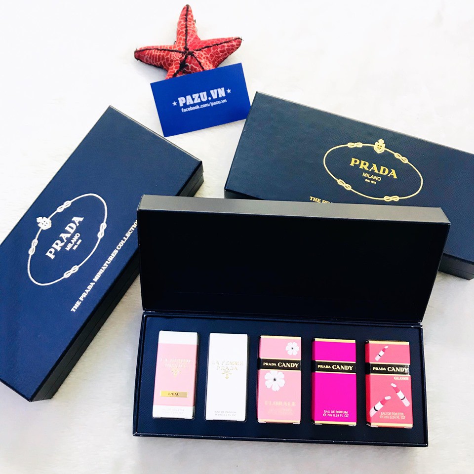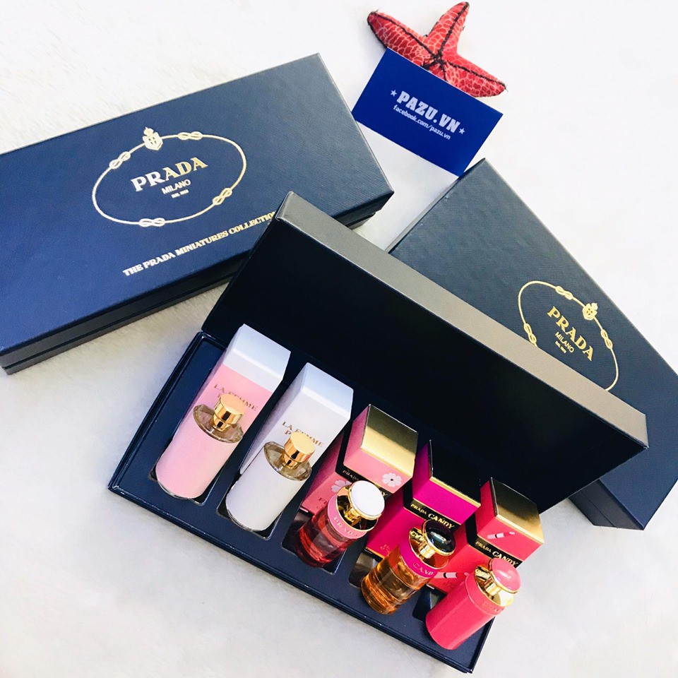 Set nước hoa mini Prada Gồm - Nước hoa Prada Candy Florale edt 7ml - Nước hoa Prada Candy Gloss edt 7ml - Nước hoa Prada Candy edp 7ml - Nước hoa Femme Prada edp 9ml - Nước hoa Femme Prada edt 9ml ====================== Ship hàng toàn quốc. CUNG CẤP SỈ & LẺ NƯỚC HOA, MỸ PHẨM, THỰC PHẨM CHỨC NĂNG NHẬN ORDER HÀNG MỸ - ÚC - NHẬT - ANH Website: Pazu.vn Hotline: 0939.658.608 Add: 448/1 Trần Hưng Đạo, P.2, Q.5, Tp.HCM