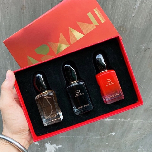🌈🌈🌈🌈 ➖Dung tích: 25ml 🌟Độ lưu hương từ 3 giờ đến 6 giờ 🌟Độ toả hương trong vòng một cánh tay 🌟Phong cách: Tự nhiên , Quyến rũ 1. Nước hoa nữ Giorgio Armani Sì EDP 25ml 2. Nước hoa nữ Sì Intense GIORGIO ARMANI 3. Nước hoa nữ Sì Passione màu đỏ ➖Hương hoa cỏ trái cây