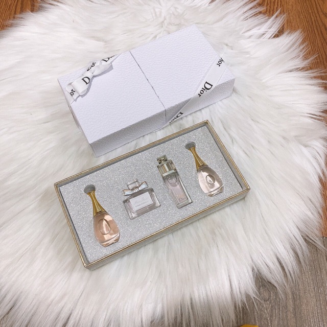 SET 4 NƯỚC HOA DIOR 🌟 Giá : 395k HÀNG KÈM HỘP RUY BĂNG BAO GỒM: ✅Dior Jadore EDP 5ml ✅Dior Jadore Absolu 5ml ✅Miss Dior Blooming Boutique 5ml ✅Dior Addict 5ml 👉👉ZALO SỈ: 0359779211
