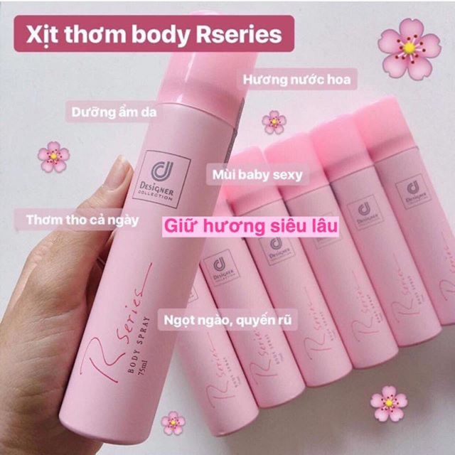 🍑XỊT THƠM BODY RSERIES - siêu thơm, giữ mùi siêu lâu ~ 12 tiếng . 💸Giá sale chỉ #120K / lọ 75ml . Thơm xuất xắc luôn nhaaa . Mùi kiểu sexy baby đáng iu ngửi là muốn thịt liền ... 🤣 Em xịt đi cả ngày hôm qua tới giờ cũng hơn 12 tiếng rồi mà vẫn còn mùi , em xịt trên da chứ lên tóc hay quần áo chắc còn hoài lun á chèn ưii 🍃 Xịt thơm Designer collection mang đến mùi hương vô cùng sang trọng , ngọt ngào mà vẫn không kém phần trẻ trung , tươi mới . 🍃 Thiết kế chai xịt thơm đơn giản , khá dễ dùng và có thể mang đi bất cứ đâu 🍃 Vòi xịt phun sương, giúp sản phẩm tỏa đều. 🍃 Độ lưu hương khá lâu . Đối với trên cơ thể từ 8 – 12 tiếng , đối với trên quần áo từ 6 – 8 tiếng 💗Xịt toàn thân tạo lại cảm giác thơm mát tươi mới , với thiết kế nhỏ gọn có thể đem theo đi làm đi chơi đi tiệc hay vận động ngoài trời 💗Những lúc khẩn cấp vì cơ thể bám mùi khối thuốc , rượu bia , mồ hôi , thức ăn ... thì với chai xịt body nhỏ gọn này sẽ đem lại mùi hương mới . Cách sử dụng: - Bước 1: cầm chai xịt cách cơ thể 30 cm - Bước 2: quay vòi xịt hướng vào cơ thể & xịt từ cổ đến chân