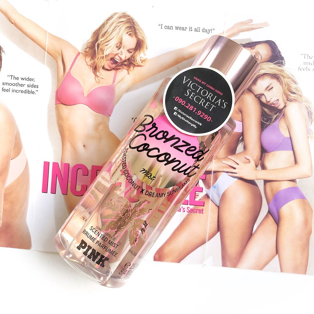 Xịt toàn thân Bronzed Coconut mist ở đây những con sóng hoang dã và hoàng hôn màu pastel gặp những trái dừa nứt nẻ và những đường rám nắng. Đưa tôi đến Thiên đường HỒNG. COCONUT Mùi như tia nắng mơ màng, tanline và dừa nướng. Về cuộc sống bikini đó. Phong cách nước hoa: Ấm áp với dừa nướng, xoài ngon ngọt & cánh hoa Tiare Xuất xứ: Mỹ Thương hiệu: Victoria's Secret USA Dung tích 250ml #Mist #XịtToànThân #Lotion #KemDưỡngThể #XịtThơm #VictoriasSecret #USA #MySho #HàngXáchTayTừMỹ #Wash #NướcHoa #ÁoNgực #QuầnLót #100ml #Pink