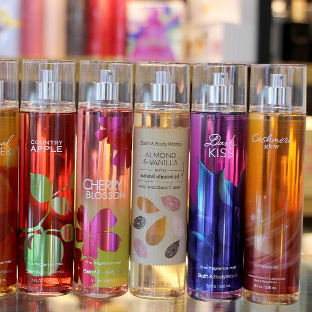 XỊT THƠM TOÀN THÂN BATH AND BODY WORKS - GIÁ : 210.000 VNĐ - Xuất xứ: Mỹ - NƯỚC HOA XỊT THƠM TOÀN THÂN của thương hiệu Bath and Body Works – Hàng xách tay từ Mỹ – đảm bảo chất lượng 100% mang lại hương thơm quyến rũ và ngọt ngào càng làm tăng thêm vẻ đẹp cho phái nữ chúng ta. Đây là một món quà đầy ý nghĩa của các bạn trao tặng cho người yêu thương của mình - Bất kể là bạn xịt toàn thân hay chỉ là xịt 1 chút xíu hương thơm yêu thích, chắc chắn bạn sẽ yêu ngay nhưng mùi hương đáng yêu này! Chai và vòi xịt được thiết kế vô vùng tinh tế để có thể xịt lượng lớn hương bụi bao phủ toàn thân! Bạn sẽ đắm chìm trong hương thơm ngây ngất