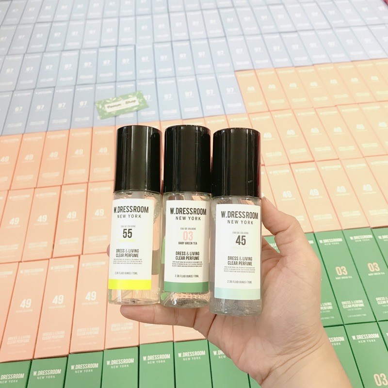 [CHỈ TRẢ ORDER - KHÔNG CÓ SẴN] . XỊT THƠM W.DressRoom Sale 59% #giá_order_sale #130k/70ml; 210k/chai 150ml Cũng 1 năm rồi mới thấy em này sale lại ấy cả nhà. Năm nay có Sale thêm các mùi mới ra, đặc biệt No.20 mùi hoa anh đào nhaa. W dressromm là một thương hiệu khá đình đám và quen thuộc với giới trẻ Hàn Quốc thời gian gần đây. Với hương thơm tự nhiên, dịu mát của cỏ cây hoa lá chắc chắn sẽ làm cho không gian phòng, không gian xe hơi hay quần áo của chàng và nàng tỏa hương thơm dịu tự nhiên bốn mùa. Gồm các mùi: (New) No.20 : Hoa anh đào mùa xuân (New) No.09 Go Go Mango: Xoài (New) No.11 White Soap : Xà bông thơm (New) No.55 Green Grape Sherbet: Nho xanh No.02: Hương Coconut No.12: Dâu xanh mọng No.34: Hương hoa đồng cỏ No.41: Sương sớm dịu nhẹ No.45: Mưa buổi sáng No.46: Hương Hoa Ly No.47: Quả sung No.49: Trái Đào (Hwang Minhyun Wanna one & Yoo Seonho Produce Wanna one xài đây ạ) No.50: Táo No.51: Nước ép bưởi No.53: Gió Địa Trung Hải No.64: Hoa hồng No.90: Trái lựu No.97: Dịu mát tháng 4 (Jungkook BTS xài nè)