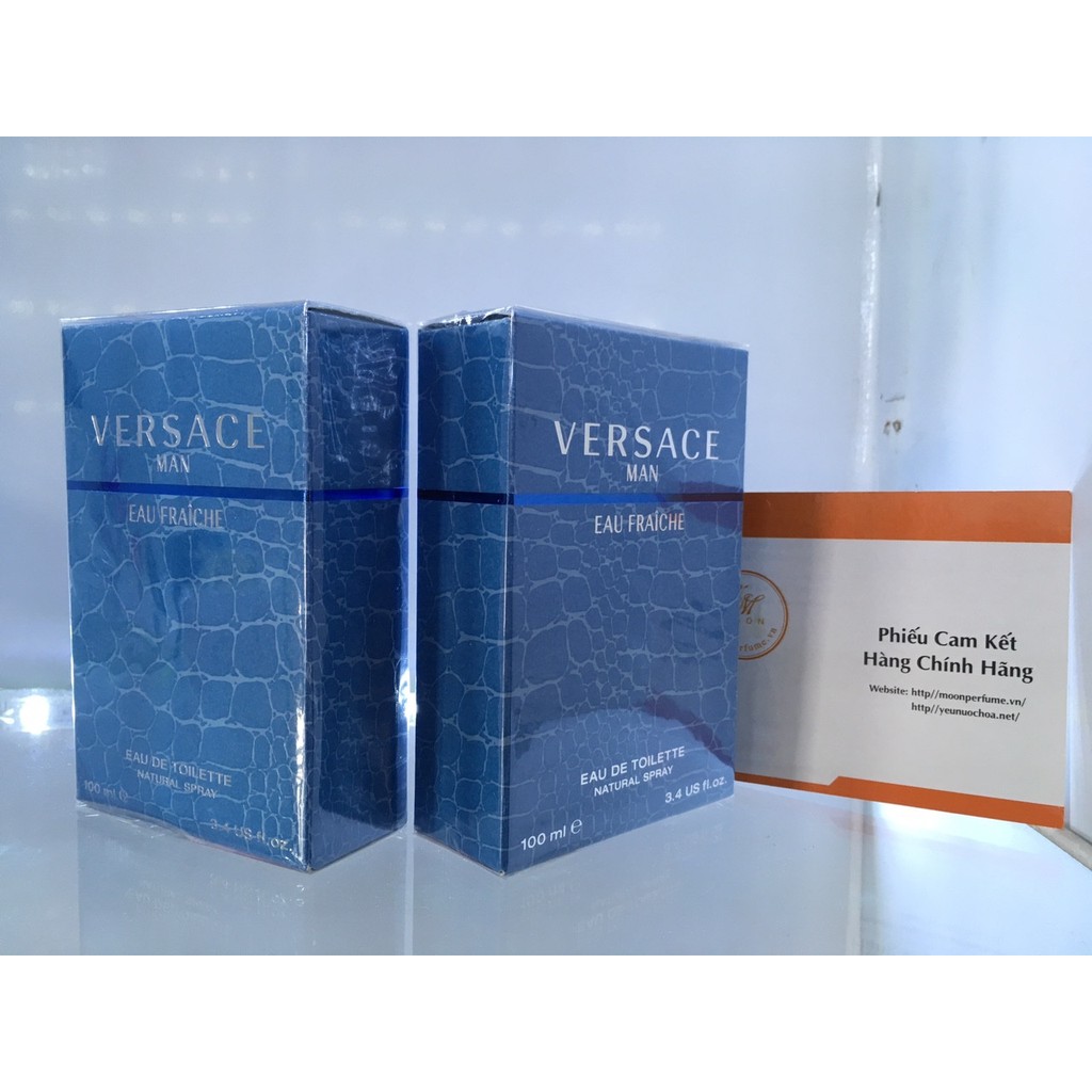 Đây là một phiên bản mới, đầy quyến rũ của nước hoa Versace Man, nhẹ nhàng và gợi cảm hơn với phiên bản gốc. Hương hoa quả dịu mát kết hợp với hương ấm áp của hổ phách, xạ hương và gỗ sung, làm nên một loại nước hoa hoàn hảo, tôn vinh vẻ đẹp nội tâm của người đàn ông hiện đại. Chai nước hoa được thiết kế tinh tế với thủy tinh màu xanh trong suốt, thân chai có hình răng cưa độc đáo làm người dùng có thể dễ dàng cầm giữ. Với thiết kế thú vị này, Versace Man Eau Fraiche đem đến sự cá tính và mạnh mẽ hơn cho phái mạnh. Ưu điểm của chai nước hoa là có hương thơm vừa phải, thích hợp sử dụng đi làm hay dùng cho những buổi hẹn hò lãng mạn. Nhóm hương: Hương gỗ biển. Hương đặc trưng: Hương đầu: Cam Bergamot, gỗ cẩm lai Brazil, bạch đậu khấu, quả chanh vàng, quả khế. Hương giữa: Cây ngải dấm, cây xô thơm, gỗ tuyết tùng, tiêu. Hương cuối: Hổ phách, nghệ tây, xạ hương, hương gỗ. Phong cách: Lịch thiệp, nam tính, cuốn hút, huyền bí.