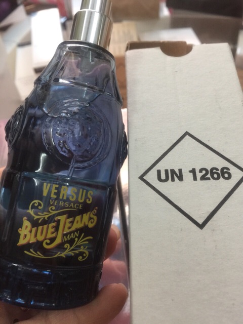 Lớp hương đầu tiên là sự kết hợp giữa hương cam quýt ướt át và hương cây bách xù nồng nàn, trong khi đó hương hoa hồng và hoa cẩm chướng mở đường cho hương hoa oải hương tại lớp hương giữa. Khoảng 30 phút sau, mùi hương nam tính, cổ điển của hương gỗ, hương vani, hương cam quýt cùng với lớp hương giữa nồng nàn bắt đầu lắng xuống và chuyển minh sang mùi hương ấm áp của lớp hương cuối cùng. Tất cả các nốt hương hòa huyện và mang lại một mùi hương tuyệt vời. Lấy ý tưởng từ mẫu chai nước hoa Red Jean, Versace đã cho ra đời mẫu chai nước hoa Blue Jean lấy tông màu xanh nhẹ nhàng làm tông màu chủ đạo cùng logo hình “chàng cao bồi”. Với ý nghĩ tinh nghịch nghịch làm lgợi lên hình ảnh về một loại thức uống có gas khi người sử dụng mở hộp và ngửi thấy mùi trái cây trong đó.