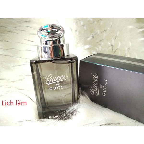 Phiên bản dành cho nam với tên gọi Gucci by Gucci Pour Homme được sáng tạo bởi giám đốc sáng tạo của hãng Gucci là Frida Giannini, với sự hợp tác của Givaudan và P&G vào năm 2008. Hương nước hoa được biết đến như một hương gỗ Chypre hiện đại và bao gồm những hương như hoa tím và cây bách ở lớp đầu, lớp giữa gồm có hương của thuốc lá và hoa nhài, lớp nền bao gồm sự hiện diện của hoắc hương, hổ phách và dấu trám. Lớp hương đầu và giữa của mùi hương này có một phong vị tươi mát, rất mịn màng với sự góp mặt của cây bách, hoa tím và cam bergamot hòa quyền cùng tạo nên một hương hoa cỏ tự nhiên nhưng vẫn giữ được vẽ ngoài nam tính. Lớp hương giữa độc đáo với hương thơm đầy cá tính của hương trầm, hương của da thuộc và vị ngọt nhẹ tinh tế của thuốc lá thơm, hổ phách hỗ trợ hương nước hoa với tính chất hương thơm ngát và ấm áp của mình. Trong khi đó hương tiêu đen cũng góp phần giúp hỗn hợp được thêm phần hoàn hảo. Lớp nền hoàn tất với hương gỗ của các lớp hoắc hương, gỗ bách tùng, và gỗ Amyris. Gucci pour home sở hữu một thiết kế chai được đánh giá cao, thân chai thủy tinh mờ trong suốt với chiếc nắp đậy nam châm với hình ảnh khoen xỏ mũi ngựa rất được ưa chuộng. Gucci như muốn gửi gắm đến những người đàn ông sự mạnh mẽ và quyến rũ ẩn trong hương thơm ấm áp, mãnh liệt và phong phú của Gucci Pour Homme. ĐÁNH GIÁ SẢN PHẨM Gucci By Gucci Pour Homme là mùi hương dễ sử dụng, phát huy tốt công dụng cho cả ngày lẫn đêm và vào các mùa trong năm (xuân, thu, đông). Thích hợp cho các cuộc gặp gỡ, họp mặt hoặc đi làm mà vẫn toát lên vẻ tự tin.