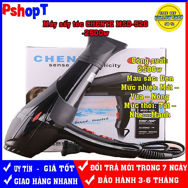 Máy sấy chuyên nghiệp cho các Salon Công suất : 2300W. Kiểu dáng thời trang 2 chế độ nóng lạnh. Dòng máy siêu bềnh