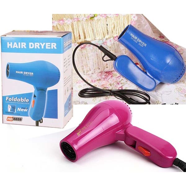 - Máy sấy tóc Hair Dryer thích hợp để sấy khô và tạo kiểu tóc cho mái tóc của bạn. - Vỏ nhựa của máy bóng đẹp, cách nhiệt và cách điện tốt, an toàn khi sử dụng. - Có 2 chế độ sấy: sấy nóng (dễ tạo kiểu), sấy mát (hong tóc mau khô). - Kiểu dáng nhỏ, gọn, nhẹ, thời trang, tay cầm có thể gấp lại khi không sử dụng, rất thích hợp mang theo khi đi du lịch. Thông tin sản phẩm: - Tên sản phẩm: Máy sấy tóc CY-8859 - Công xuất: 800W - Màu sắc: Xanh, hồng tím. - Kích thước: 14cm. - Trọng lượng: 384gr. - Chất liệu: Vỏ nhựa, cách nhiệt. - Thông số kĩ thuật (in trên máy): 220V- 50Hz. - Bảo hành 1 tháng 1 đổi 1 tại eshop24h.vn